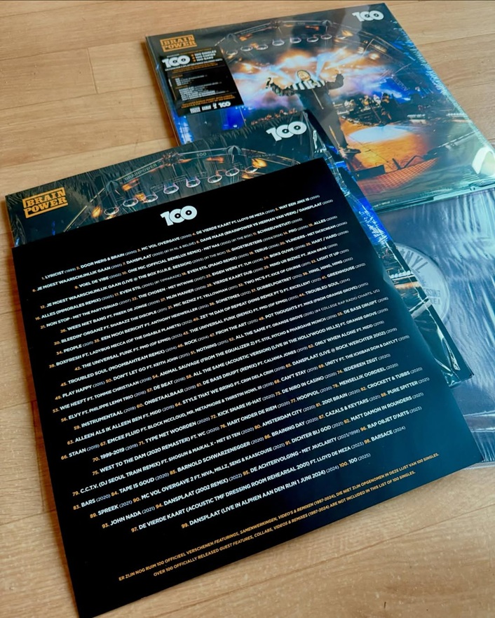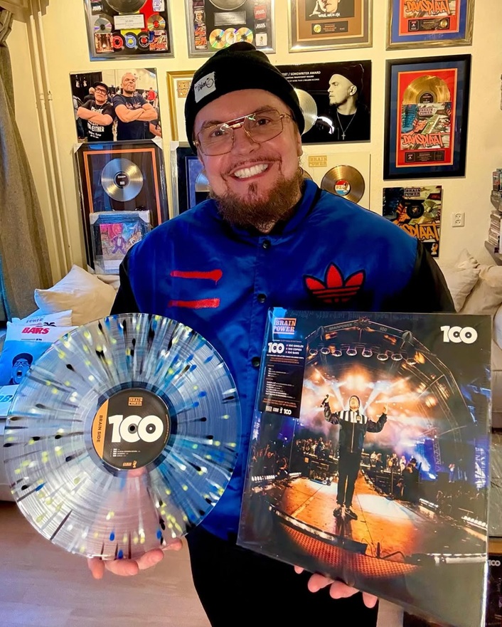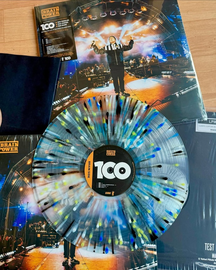 Vandaag, op zijn verjaardag, heeft Brainpower zijn honderdste single uitgebracht met de toepasselijke titel “100”. Met het behalen van deze mijlpaal heeft hij voor de door TLM geproduceerde track ook honderd stuks aan vinyl laten drukken. Op de A kant van het ‘Forever 4 Splatter Force Colored’ vinyl staat de track “100” met twee instrumentalen, waarvan ook een instrumental met hook erop. Uiteraard vind je ook de acapella versie terug.