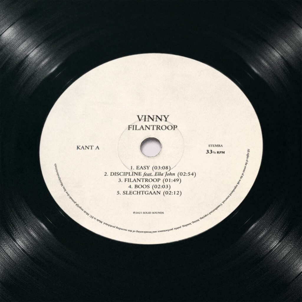 Vandaag verscheen het album “Filantroop” van Vinny en producer LJ op de online streamingdiensten. Tijdens de luistersessie in Buya Boutique, Den Haag, konden de genodigden al een fysiek exemplaar bemachtigen van het album in de vorm van vinyl. Het vinyl is vanaf nu ook te koop via de webshop van Vinny.