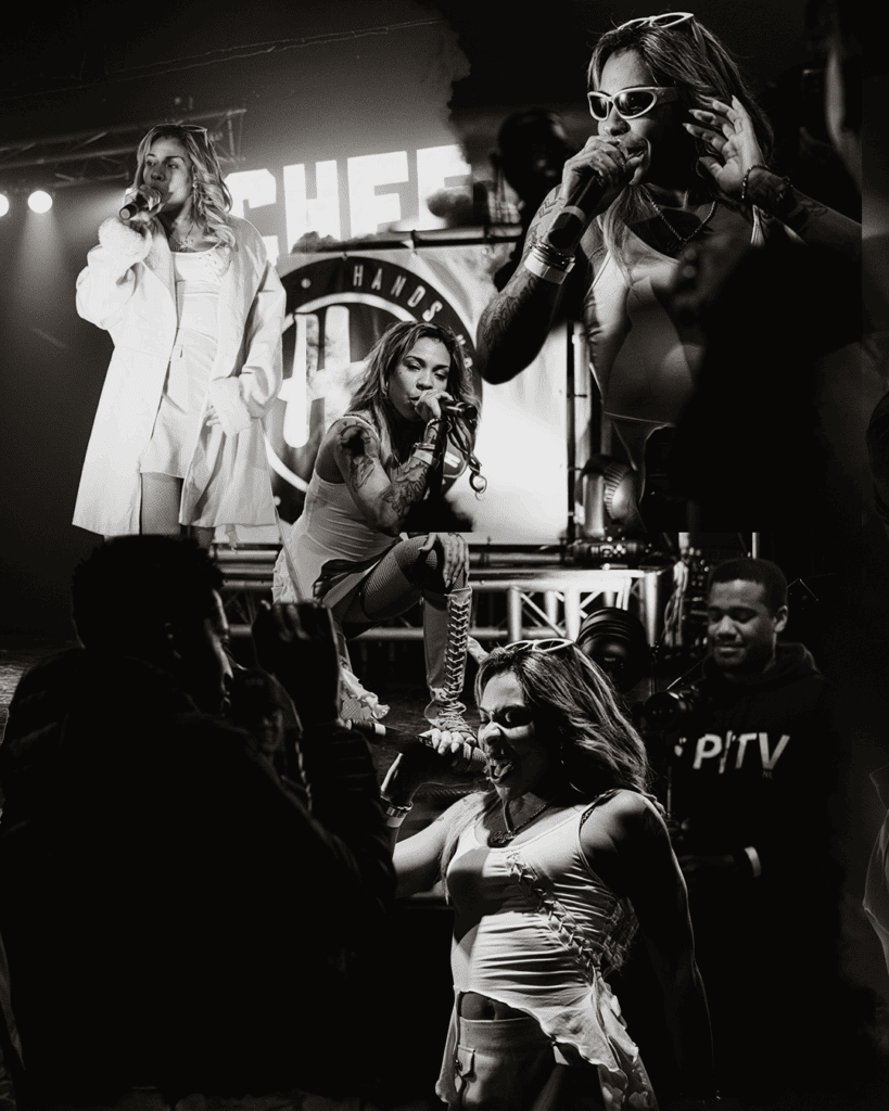 Deze keer was het de beurt aan Yasz Base, een naam die ik eerlijk gezegd nog niet kende, maar dat veranderde binnen tien seconden. Zodra ze het podium opstapte, trok ze met haar attitude, uitstraling en zelfverzekerdheid meteen alle aandacht naar zich toe. Ik durf te stellen dat Nederland misschien nog niet ready is, maar dit had zonder moeite op een internationaal podium kunnen staan. Yasz Base schakelde moeiteloos tussen zanglijnen en snoeiharde raps en maakte van haar optreden een volledige performance. En ik geef het eerlijk toe⦠ik werd er bij vlagen een beetje zenuwachtig van. Om de haverklap danste ze sensueel met iemand uit het publiek of trok ze iemand het podium op. De young ones stonden met open mond te kijken, terwijl ik mezelf al bijna wilde verstoppen onder de tafel van Finesse Records.