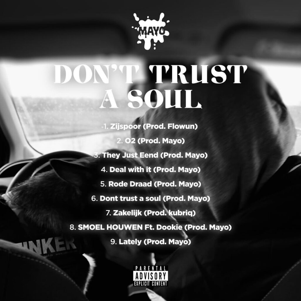Onlangs gaf Mayoness de single “Lately” vrij dat afkomstig is van zijn nieuwe release “Don’t Trust A Soul” dat negen tracks telt. De tracks zijn geproduceerd door Flowun, kubriq en Mayo zelf. Op de track “SMOEL HOUWEN” staat een gastbijdrage van niemand minder dan Dookie.