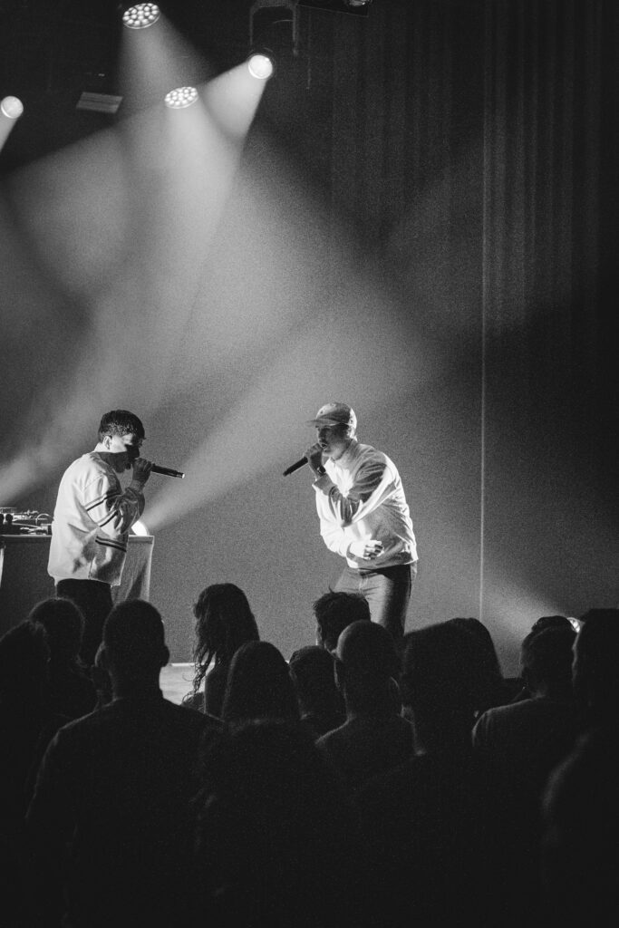 Ori nam plaats achter de wielen van staal, gehuld in een apenmasker dat zorgde voor een geheimzinnige, grimey vibe. ToupToup verzorgde de backing vocals, terwijl WadAap bar voor bar strak afvuurde. Wat dit optreden vooral dope maakte, was de vibe die het drietal wist te creΓ«ren: WadAap met volledige focus, Ori scherp en precies met de cuts, en ToupToup met een opvallend relaxte uitstraling.